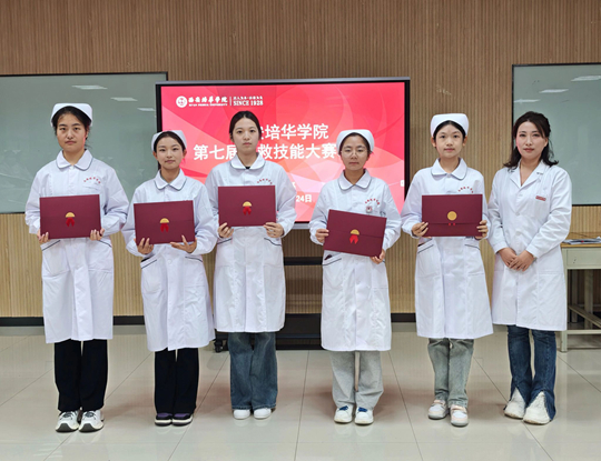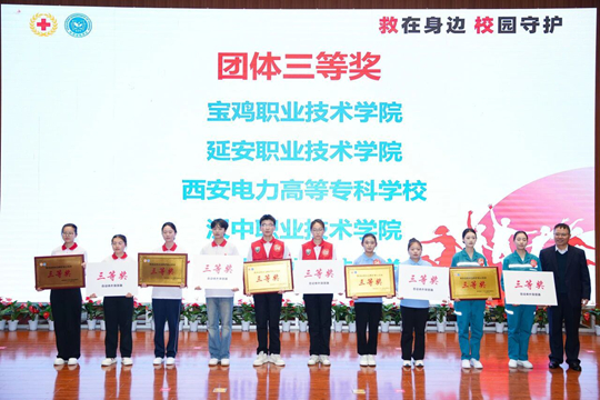 本次展示活动创新采用“专题培训+技能展示+主题演讲”三维模式,设置实操竞技、情景模拟等多维度考核环节,全方位考核参赛队伍的理论功底和协同能力。经过激烈角逐,分别评选出心肺复苏+AED单项奖一、二、三等奖;创伤救护单项奖一、二、三等奖;主题演讲单项奖一、二、三等奖;团体一、二、三等奖及优秀组织奖。其中,西安培华威廉体育代表队获团体二等奖及优秀组织单位称号。医威廉体育杨添乐同学摘得创伤救护组一等奖,张璐同学在成人心肺复苏(CPR+AED)项目获三等奖,杜元元同学获主题演讲三等奖。