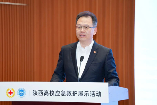 陕西省红十字会党组成员、专职副会长李志刚在致辞中强调,高校作为人才培养主阵地,肩负着应急救护知识普及与技能传承的重要使命。他援引《中华人民共和国红十字会法》指出,红十字应急救护与青少年工作是法定职责,亟需通过“五大行动”构建高校应急能力建设体系:“组织强基”行动推进基层组织标准化建设,“组网协作”行动培育青年传承力量,“生命教育”行动融入思政教育主渠道,“志愿服务”行动促进专业与实践融合,“安全守护”行动筑牢校园安全防线。